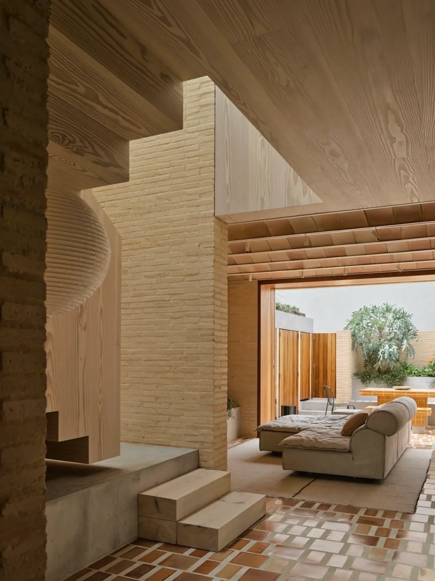interior ambient light · material texture detail · warm wood interior